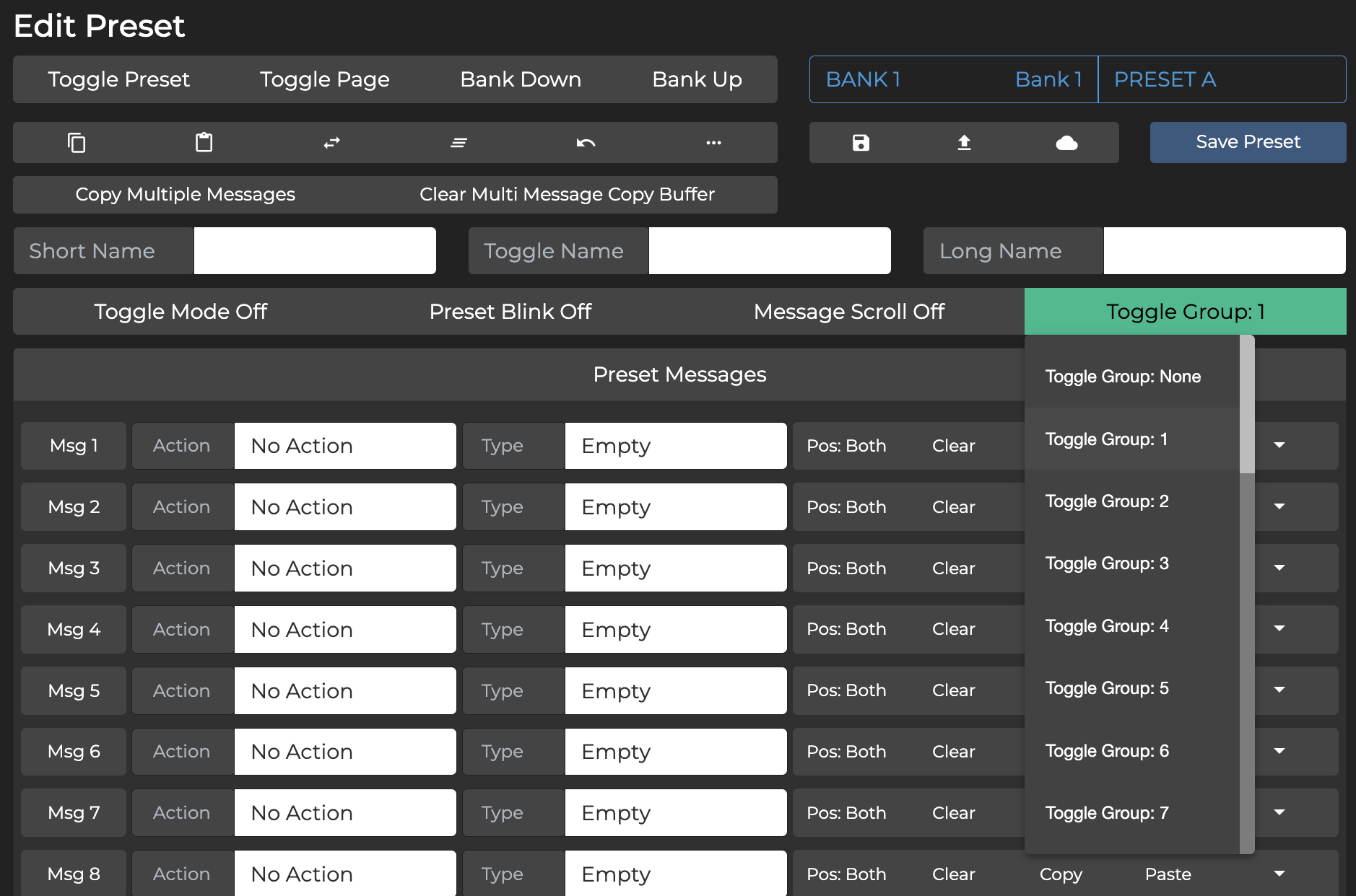 You can also copy and paste multiple messages (even from different presets) by enabling the ‘Copy Multiple Messages’ function. Any messages you copy will be added to a buffer. When you click on Paste, all these messages in the buffer will be pasted to the messages in the preset.