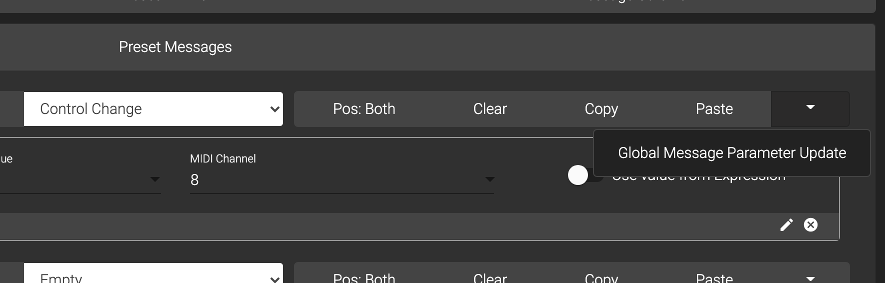The Global Message Parameter Update (GMPU) allows you to update all similar Preset messages globally to different parameters. The option is available in each message in the Preset settings.
