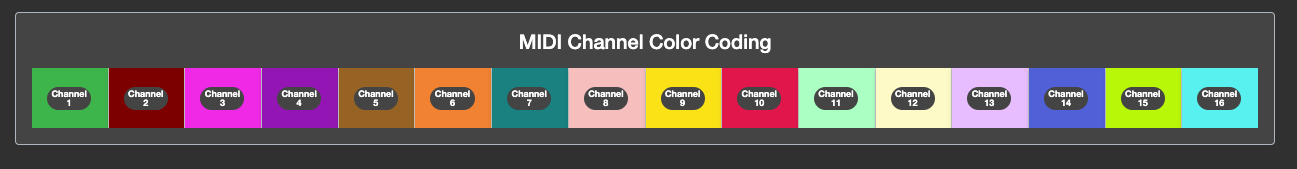 When editing MIDI messages in your Presets, the messages parameters are color-coded to give better visuals on what device the message is for. You can arrange the color codes for the different MIDI channels here.