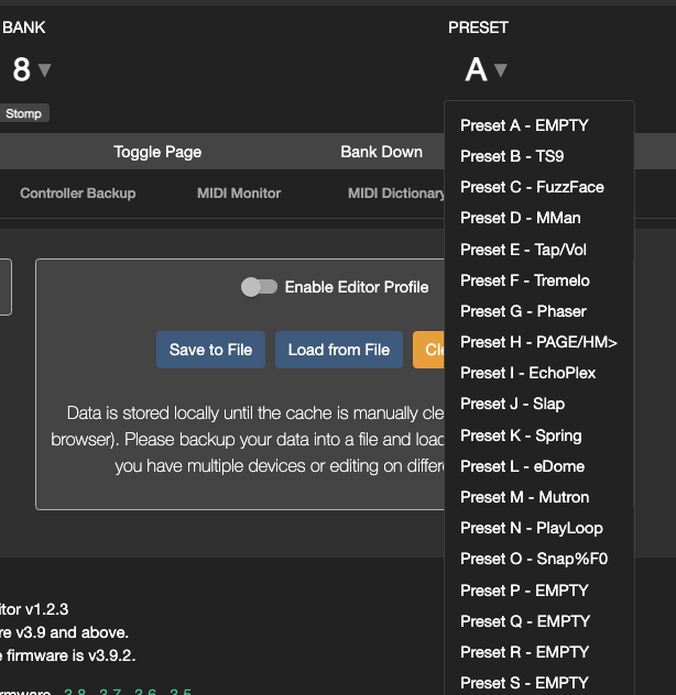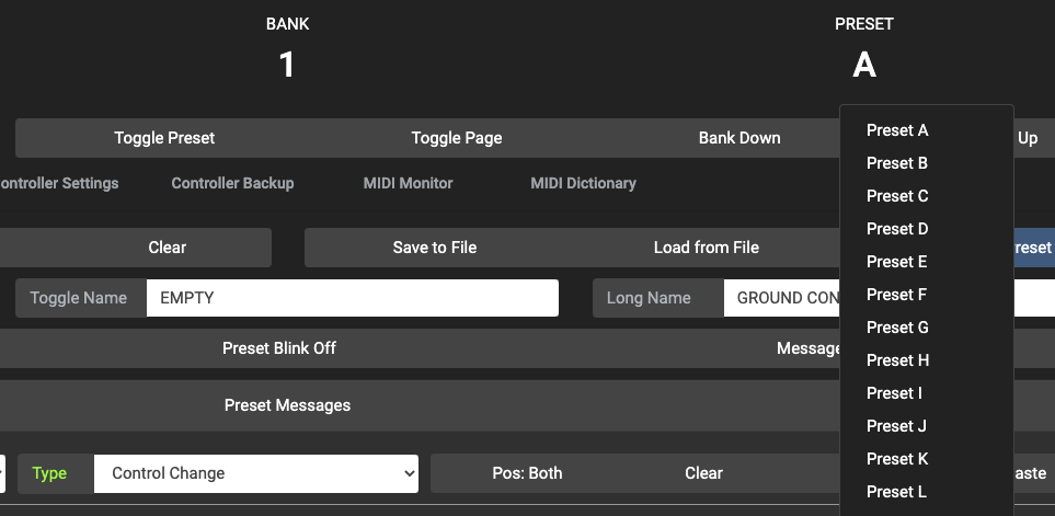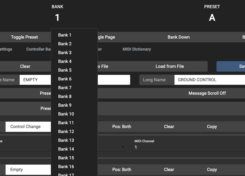 Clicking on the Bank or Preset labels will allow you to select the Bank or Preset to switch to.
