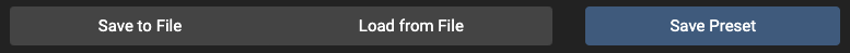 You can save your Preset setting in the Editor to a .json file by clicking on the Save to File button. A File Dialog box will appear and allow you to save the settings to your computer.