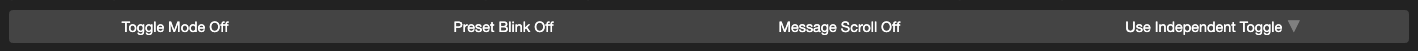 The button block below allows you to edit the Toggle function (whether the Preset should toggle between Position 1 and 2), Blink function (whether the Preset Short Name should blink when the Preset is toggled), and Message Scroll function.