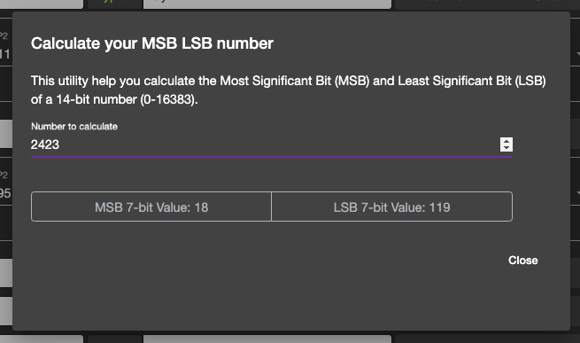 Some MIDI devices utilises MSB and LSB to allow more control. Helps you to calculate the Most Significant Bits and Least Significant Bits for a given 14-bit number
