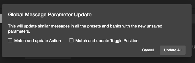 The Global Message Parameter Update function allows you to update all similar messages in your controller to new parameters.