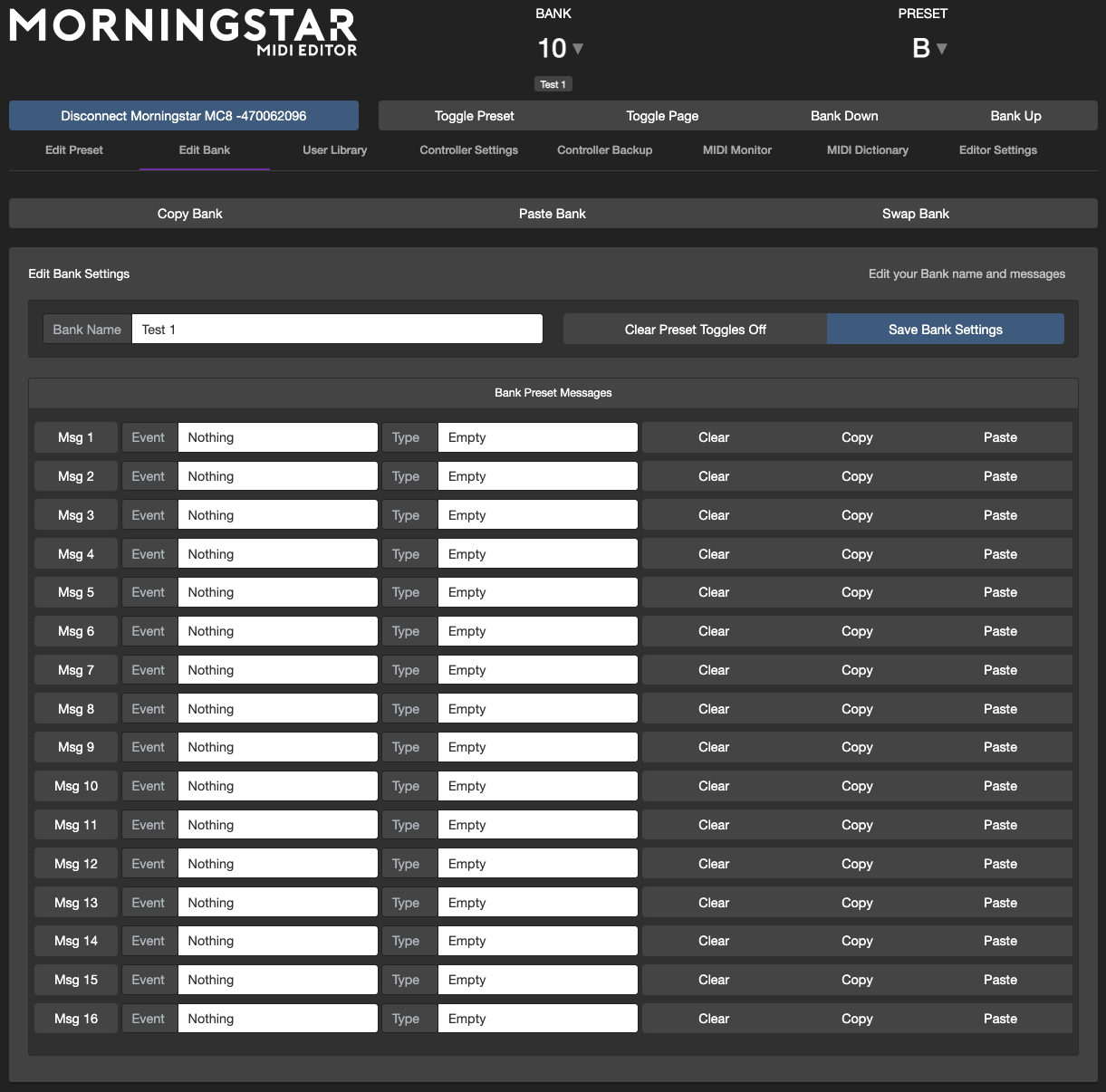 The Bank Name input box allows you to name your Bank on the controller.