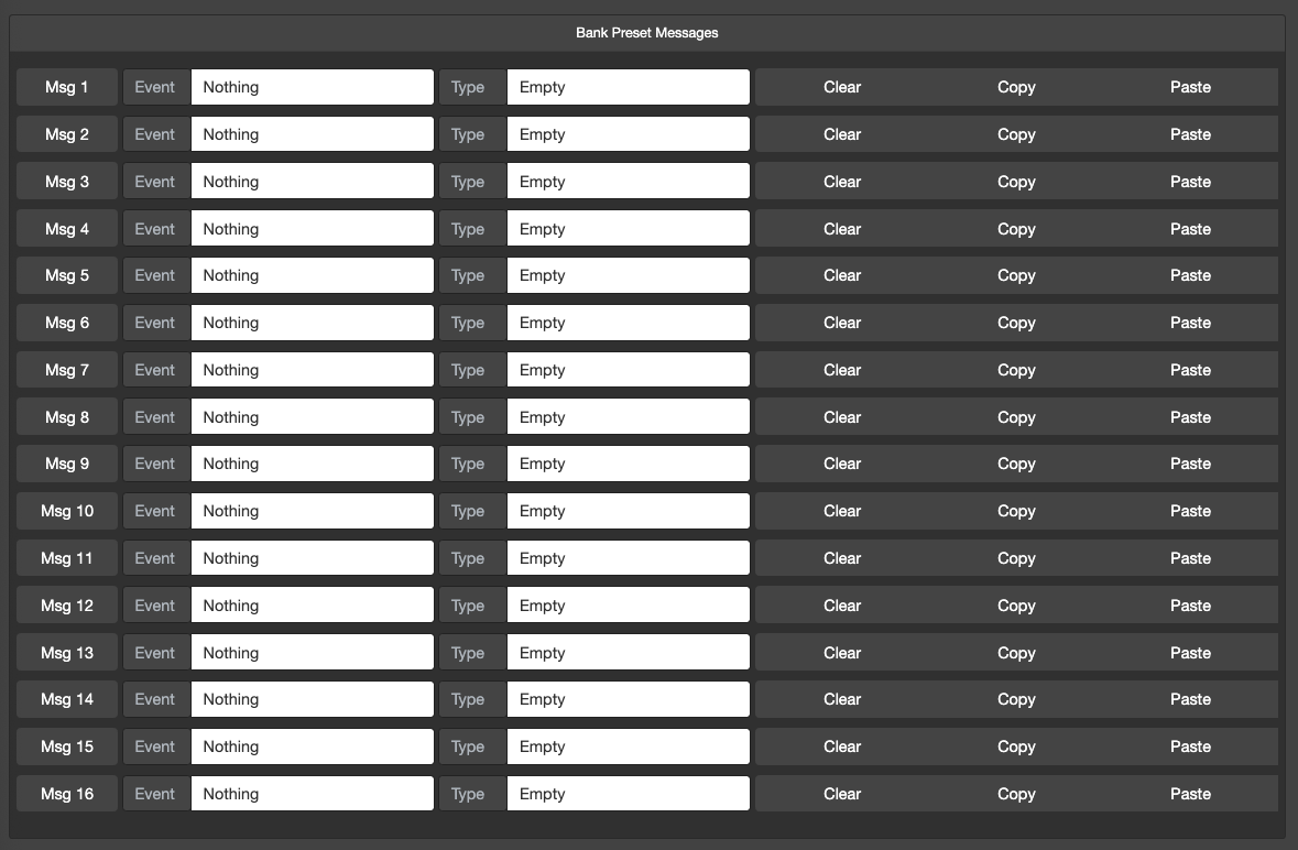 Similar to Preset Messages, each Bank also has its own set of Messages that it can execute on specific events.