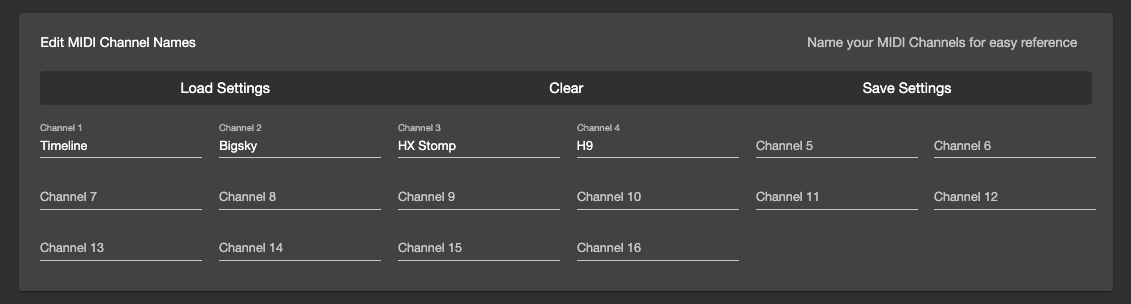 This block allows you to edit the MIDI Channel names for each MIDI channel.