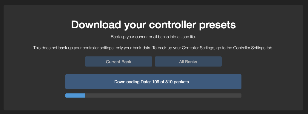 Clicking on Current Bank or All Banks will start the data dump from the controller to the editor.