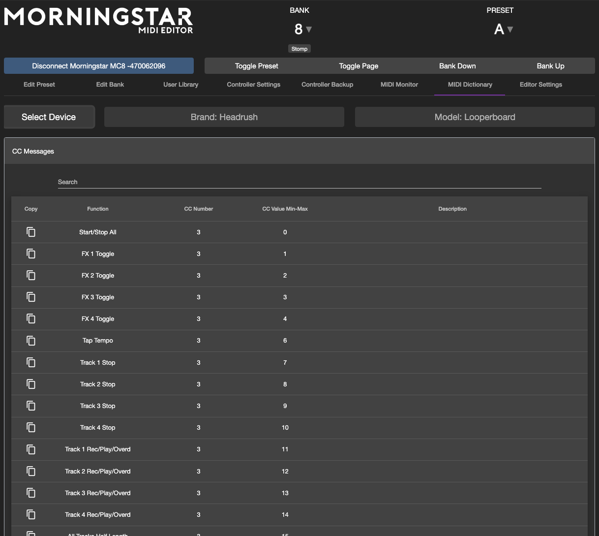 If you have named your MIDI Channel, clicking on Copy in the MIDI Dictionary and then Paste in the Edit Preset tab under the Message Type will auto configure CC message parameters and MIDI Channel.