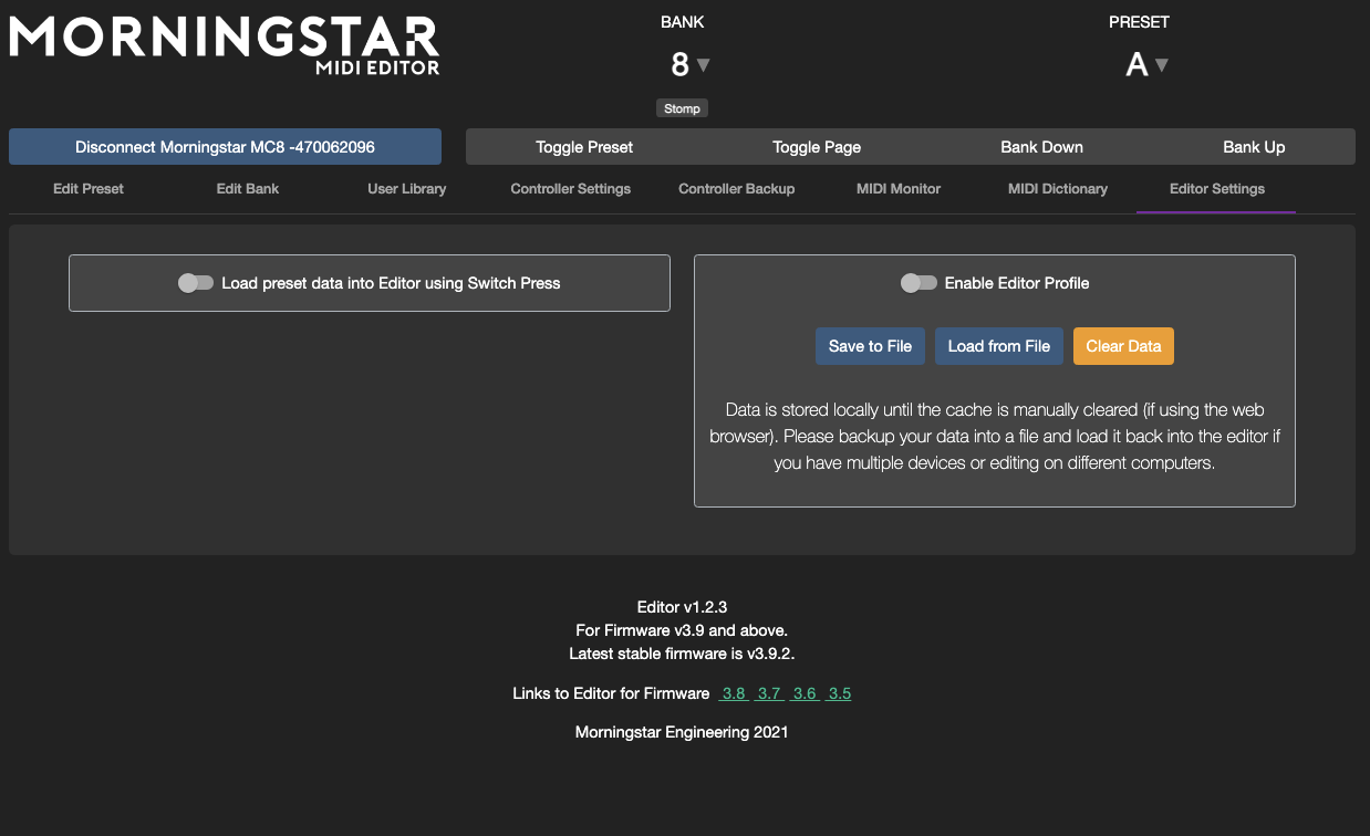Clicking on Save Preset will save the Preset settings on the editor to your controller.