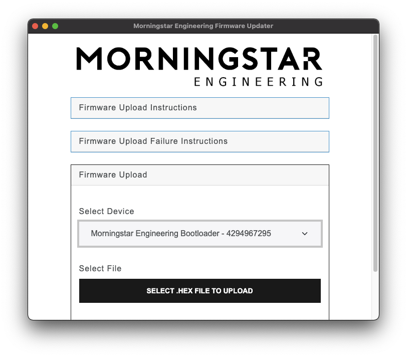 Pressing the button will call up the Bootloader, which will be detected by the Firmware Uploader software. You can then proceed to upload the firmware as per normal.