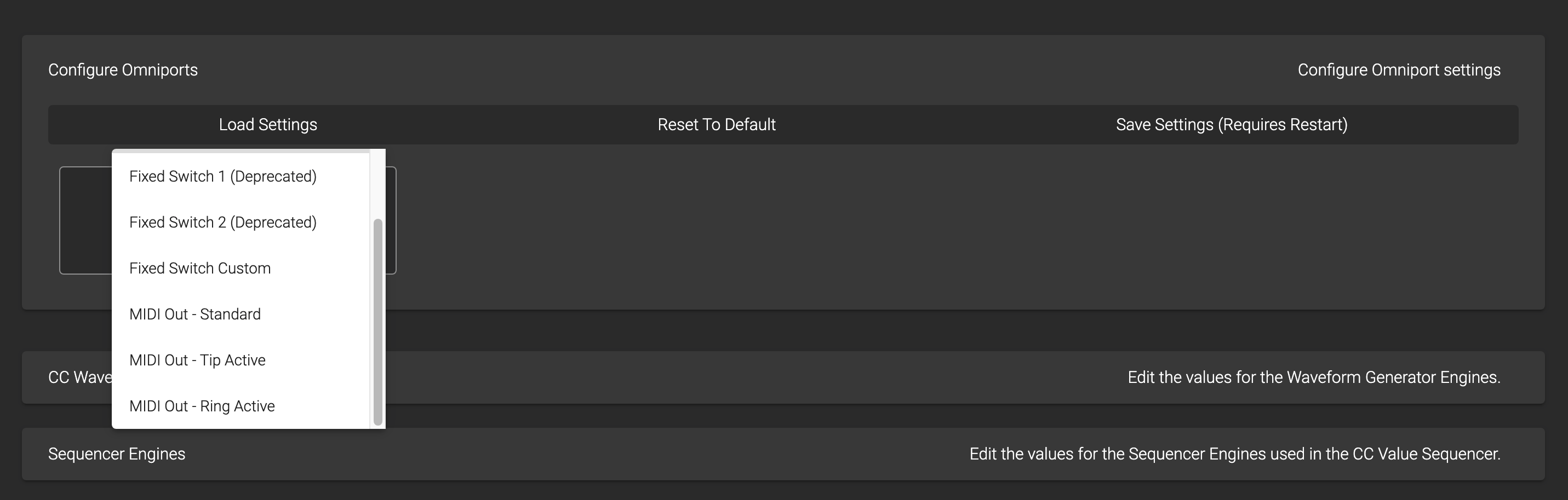 Omniports are 1/4 inch multi-function ports found on Morningstar MIDI controllers. The Omniport on the MC3 can be configured to work as any of the following: