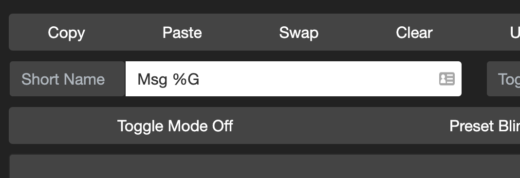 In your Preset Short Name, you can use a %G placeholder to indicate on the Short Name which message the pointer is currently at. For example, in the picture below, the Short Name Message %G will be displayed on the controller as Message 1 if the pointer is currently at 1.