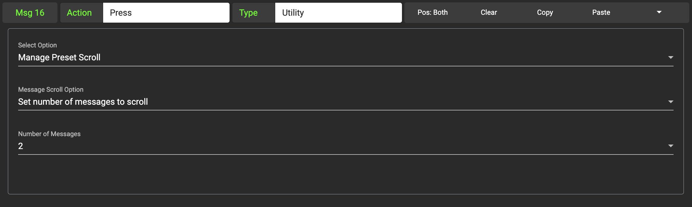 By using the Utility message type to set the Preset to scroll through multiple messages, you can scroll through 2 messages and rename the Preset with each release action.