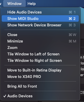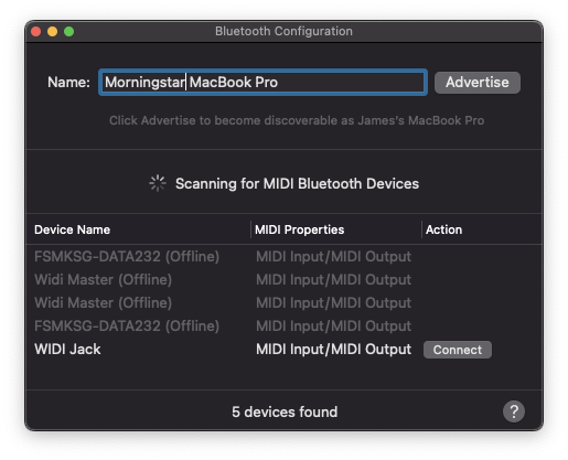 After the MIDI Studio window opens, click on the Bluetooth icon on the top right.