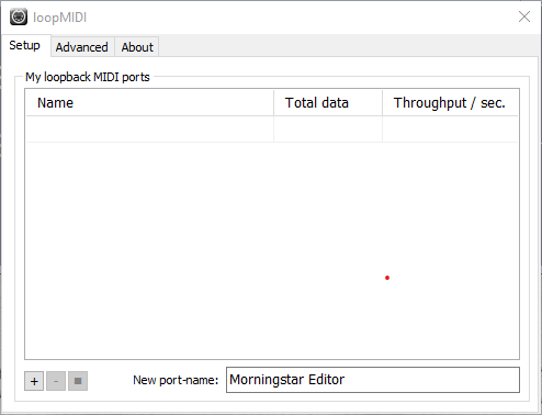 Be sure to include Morningstar in the port name. If not, the Morningstar Editor will not be able to detect this virtual MIDI Port.