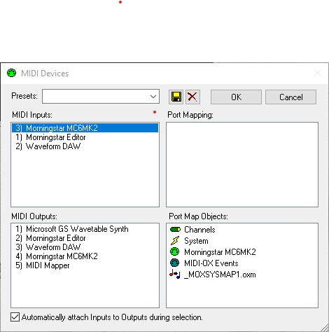 In MIDI Inputs, select your MIDI Hardware (or in this example, Morningstar MC6MK2).