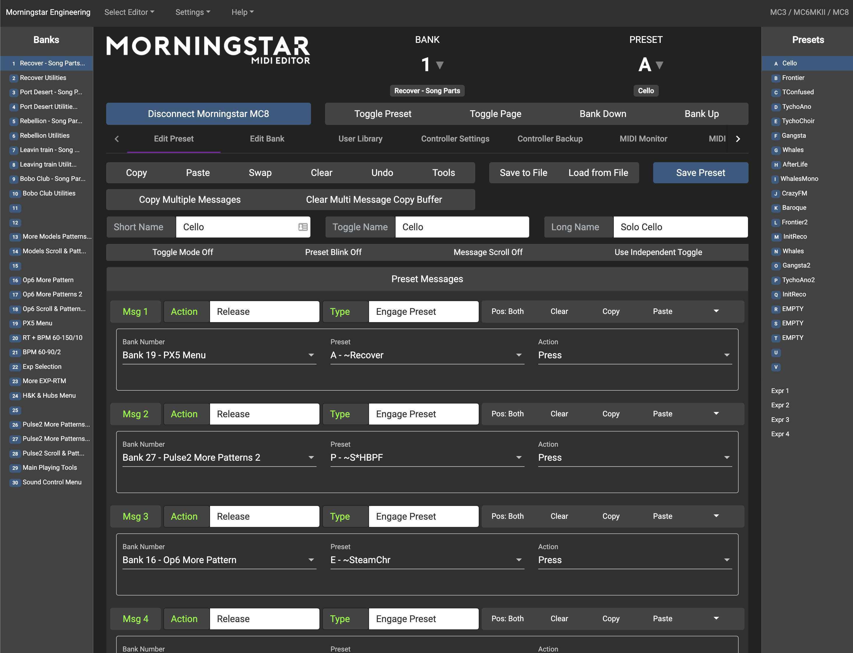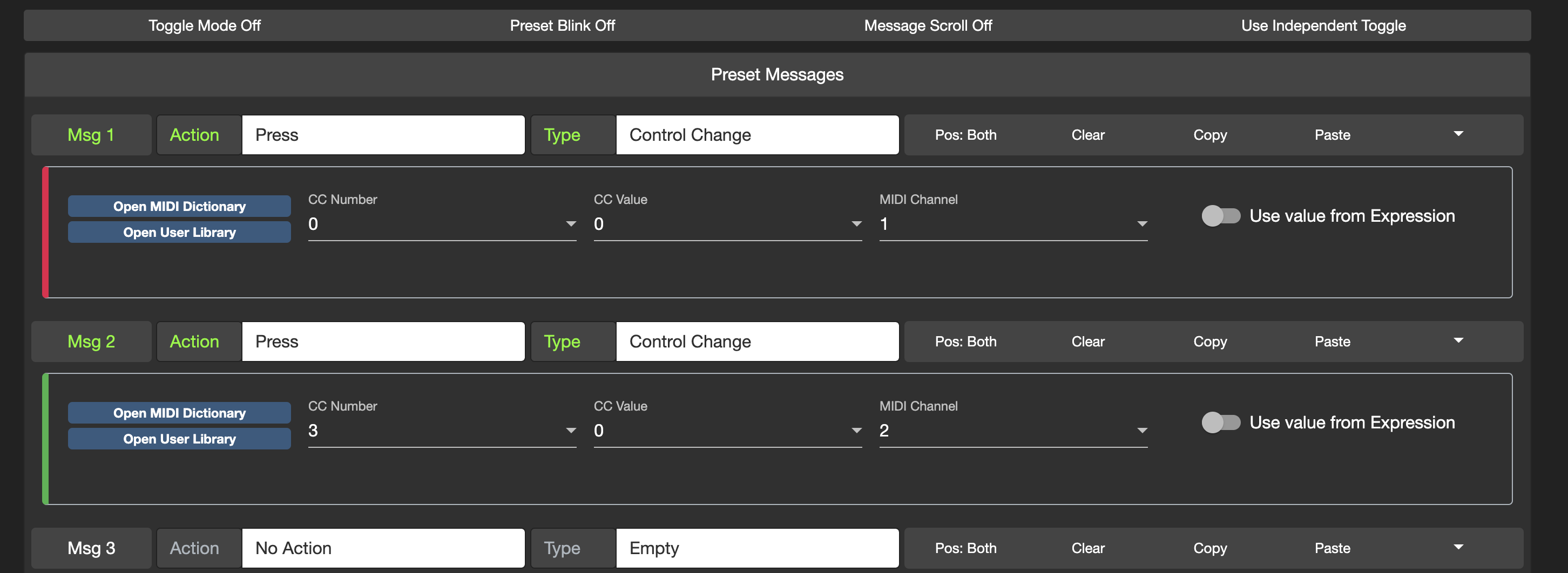 Added Add To User Library functions in the PC and CC message type so users can add directly to the User Library from the Preset Settings.