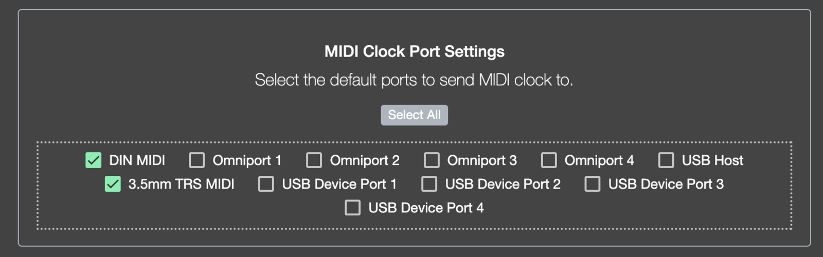 Using the MIDI Clock Port Settings in the Controller Settings >> General Configuration
