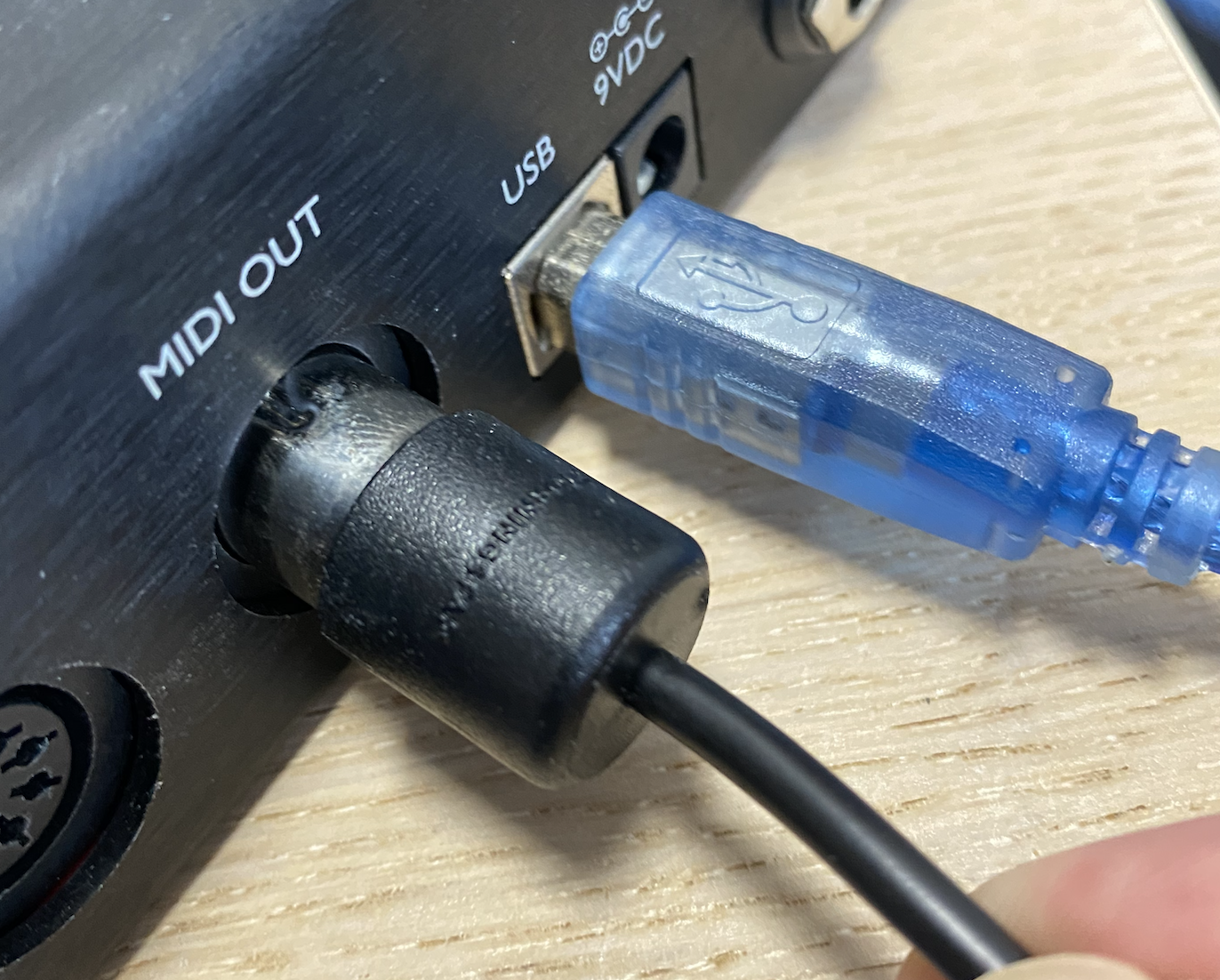 Correct orientation on the MC6. MIDI plug is in line with the MIDI Port.