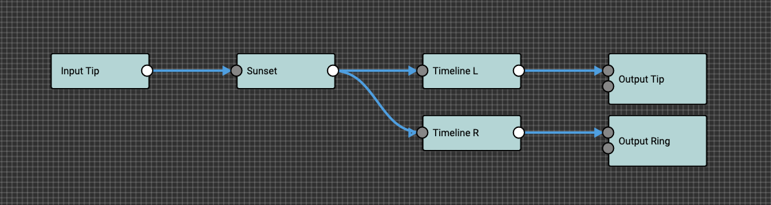 For example, if you have the Strymon Sunset (mono) and the Strymon Timeline (Stereo) device in your setup, and you want to split the mono signal from the Sunset and run it into the Timeline stereo L and R inputs, the setting will look like this in the Editor: